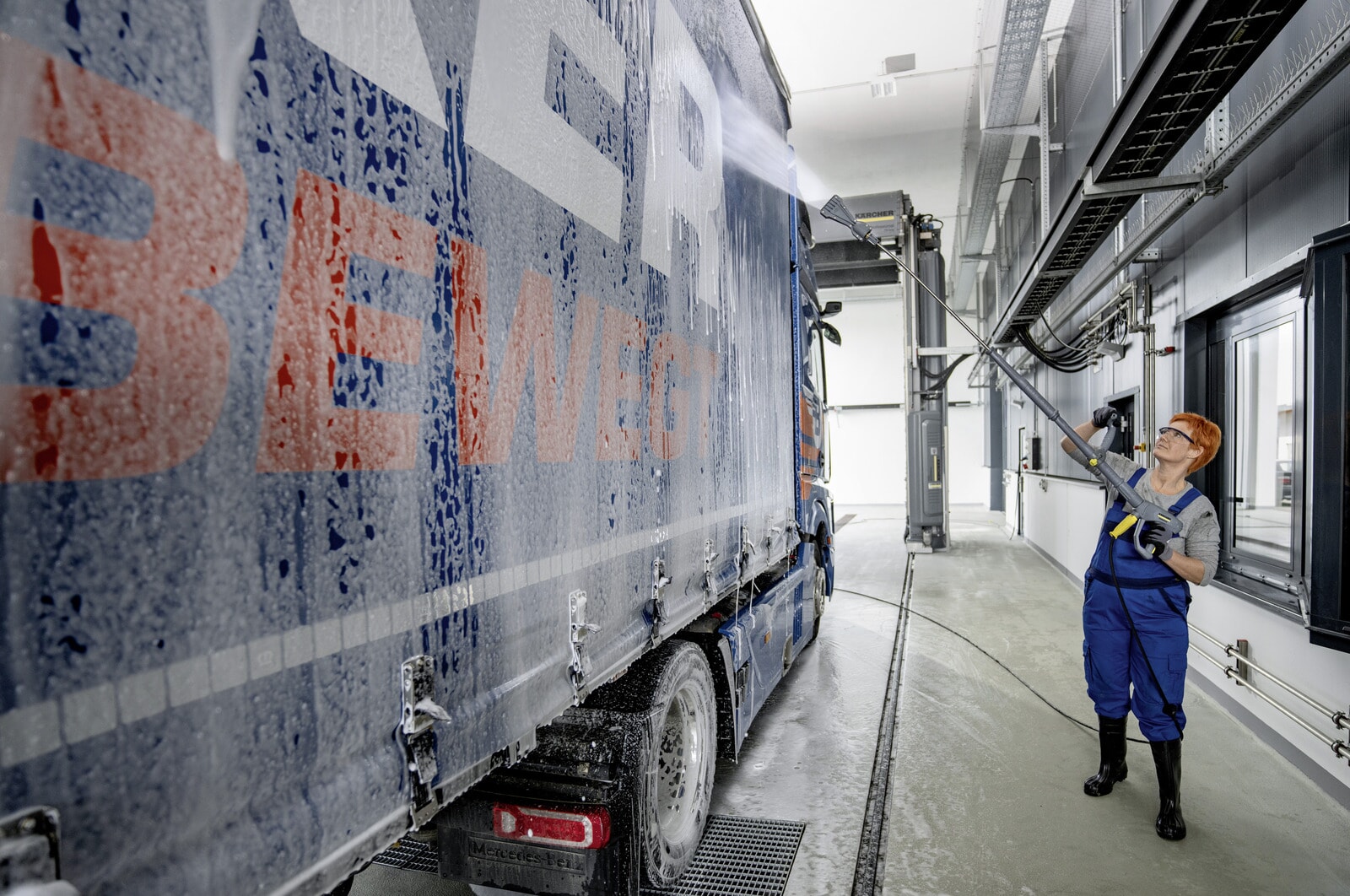 Maskinen har også en integrert vanntank med tørrkjøringsbeskyttelse. Vaskemiddelet tilføres via et inntak med doseringsventil, og nivået vises med en indikator.