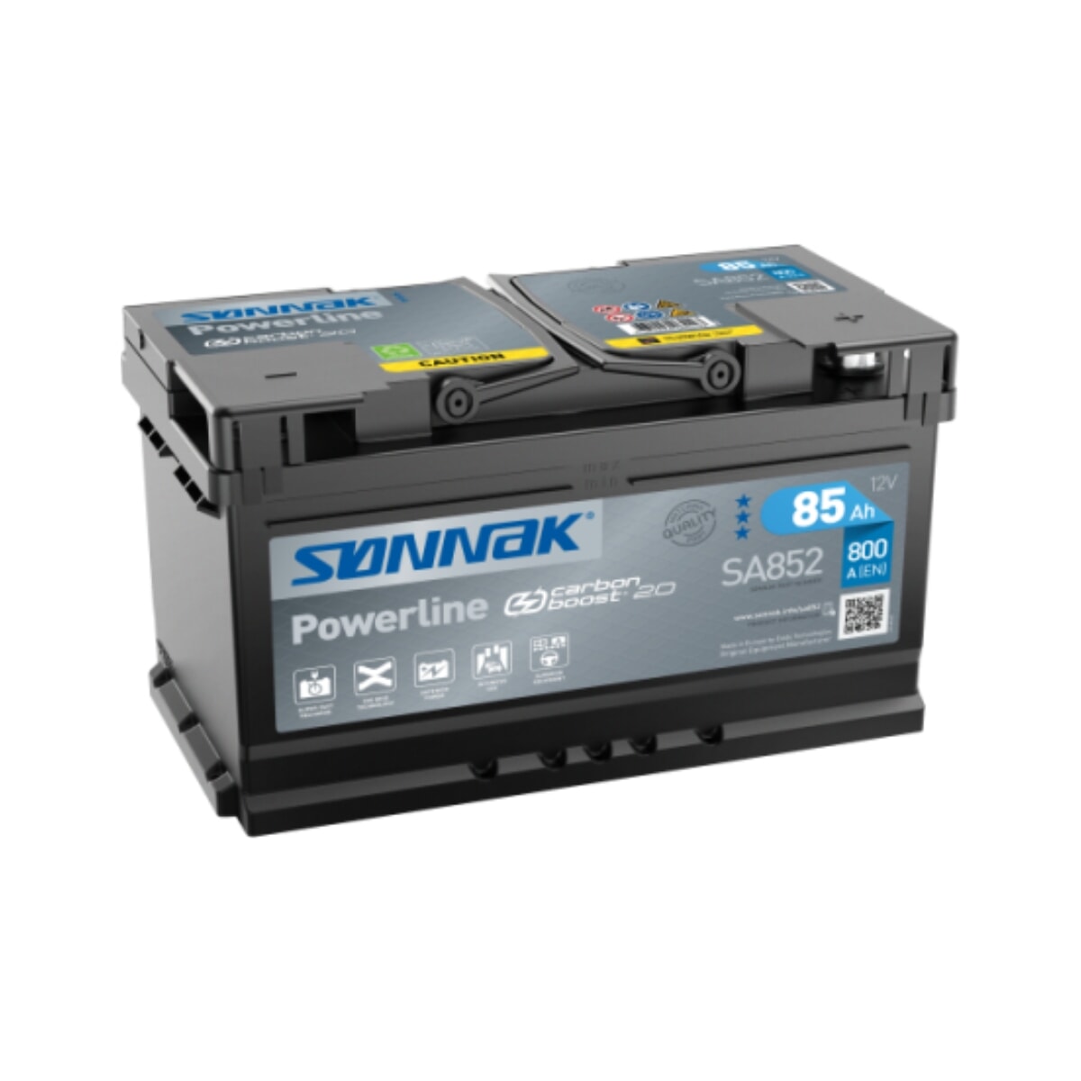 Sønnak Powerline Carbon Boost 2.0-batteriet lades opptil 2 ganger raskere på grunn av vår egenutviklede metode for karbontilsetninger på de negative platene.