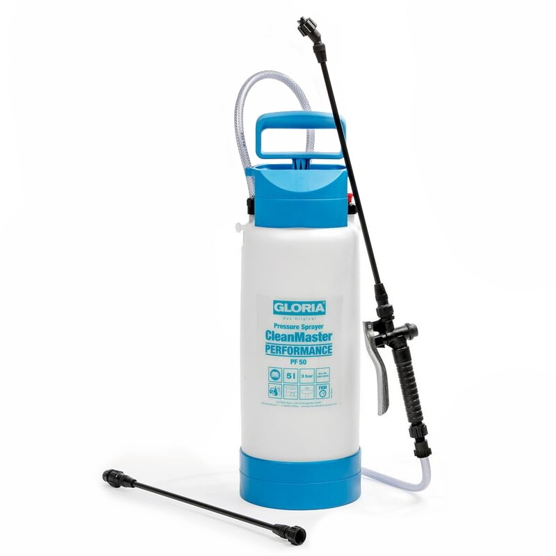 Gloria CleanMaster Performance PF 50 Kjemisprøyte er utstyrt med FKM pakninger, og viser en særlig høy resistans mot syreholdige midler med veldig lav pH-verdi, i tillegg til hydrokarboner (olje, fett, løsemidler).