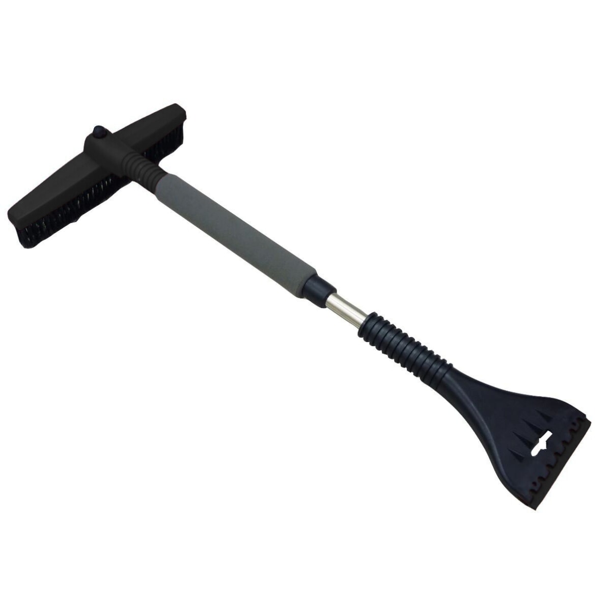 Snø børstes enkelt bort med den justerbare snøbørsten. I andre enden av børsten er en isskrape for å fjerne is fra vinduer.