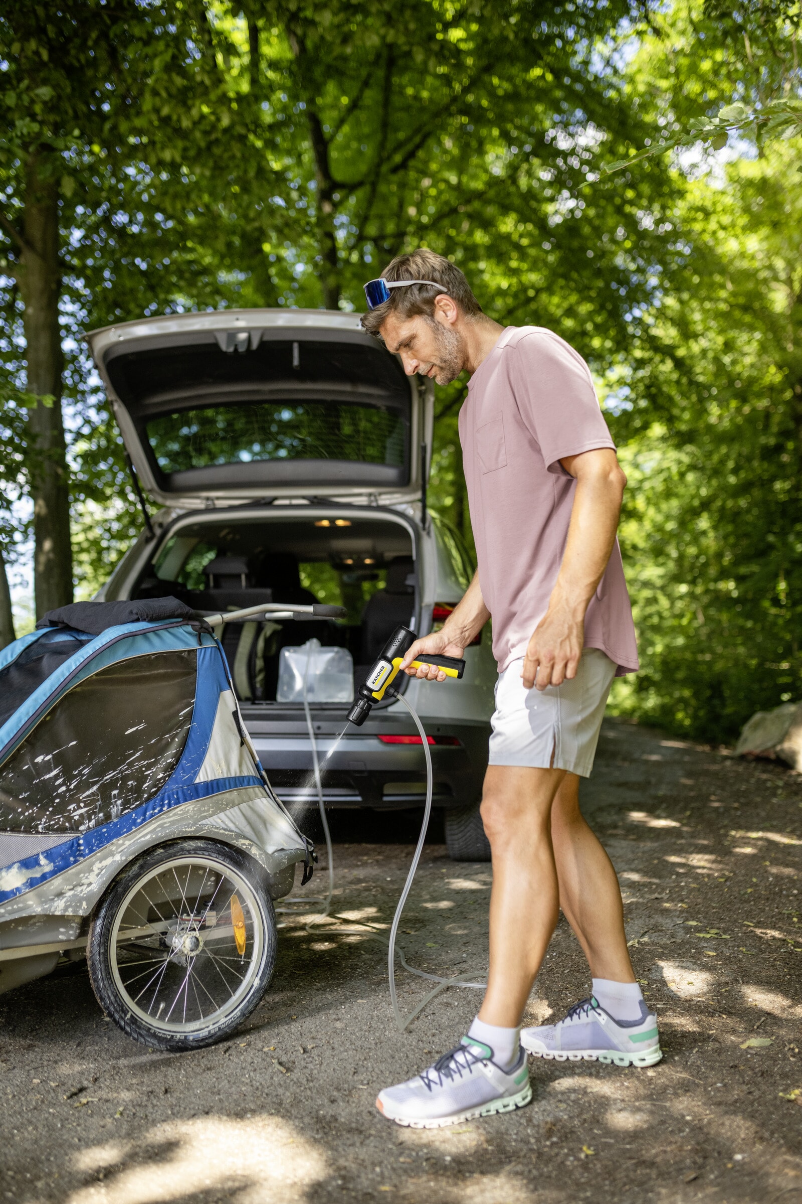 OC Handheld Compact Adventure er en kompakt, håndholdt mellomtrykksvasker med vannavisende oppbevaringsveske. Perfekt for deg som er aktiv og ønsker å få rengjort eksempelvis utstyr, sko, skitne føtter eller sykler etter turer i skog og mark, før det skal pakkes inn i bilen igjen.