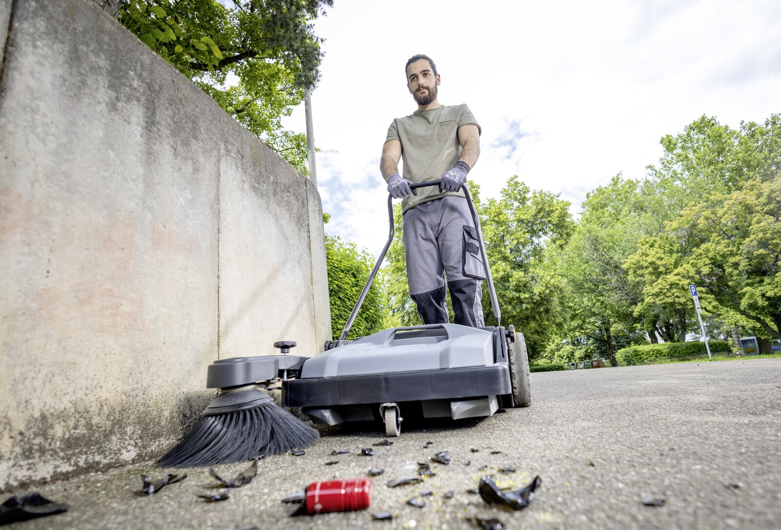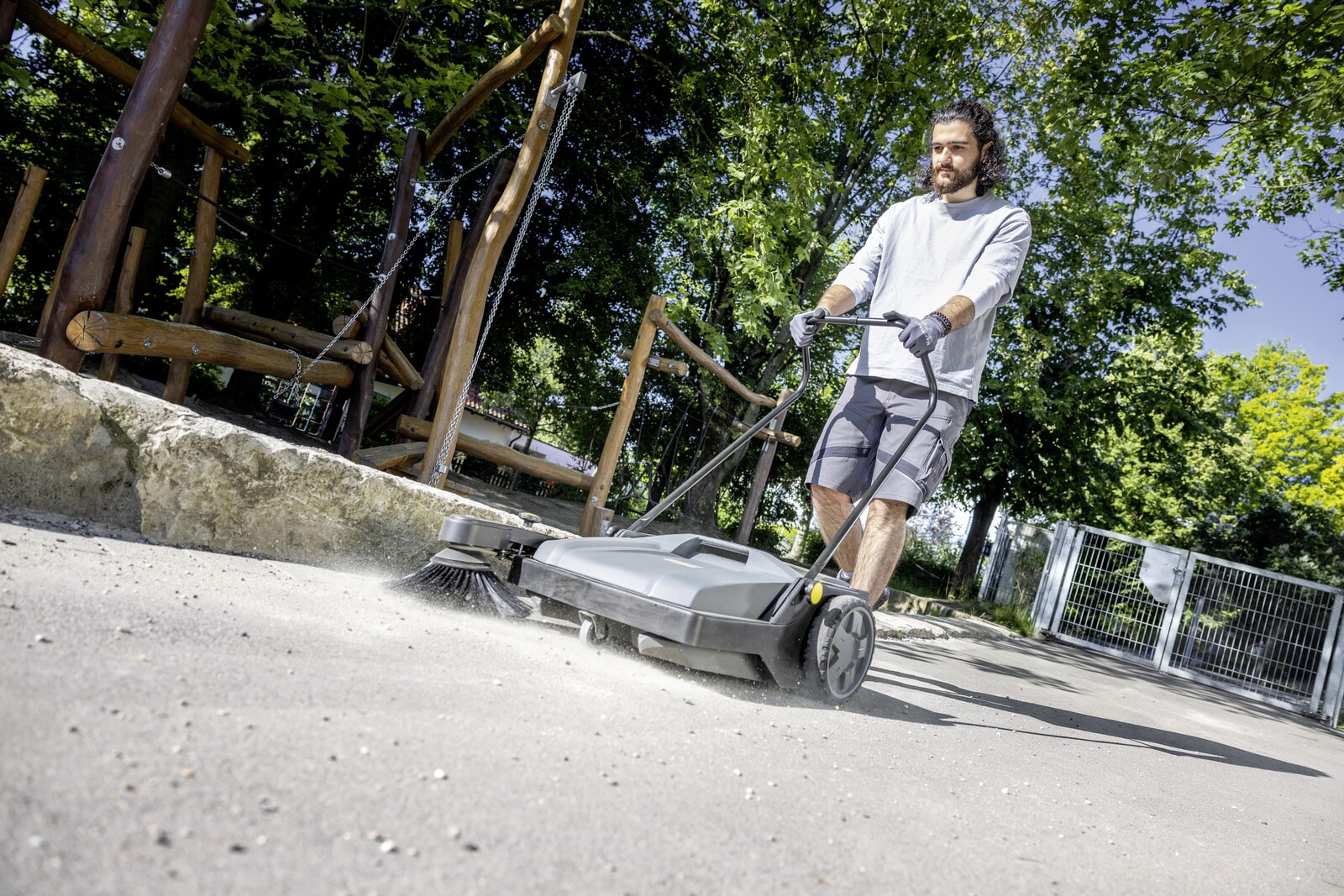 - Med den kompakte, manuelle feiemaskinen KM 70/15 C Classic kan både innendørs og utendørs områder rengjøres enkelt og effektivt.