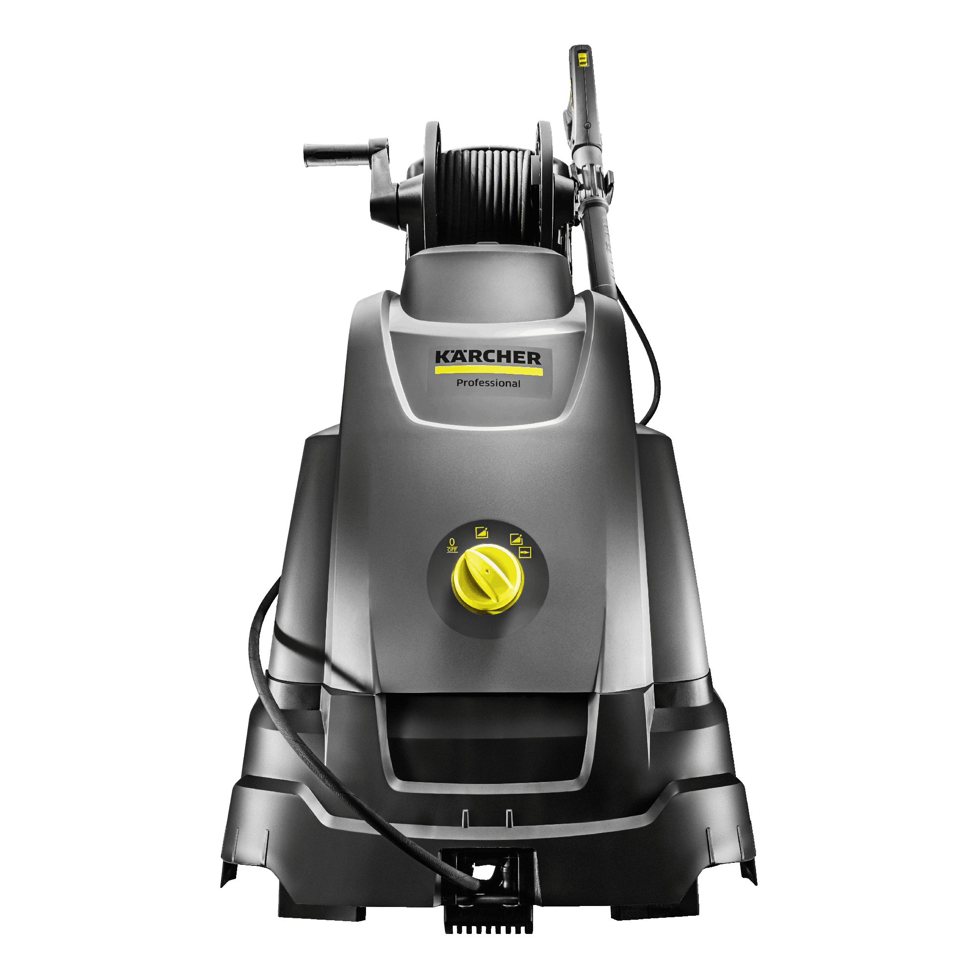 Utstyrt med slangetrommel og 15 m slange som gir sikker lagring av slangen og stor arbeidsradius.