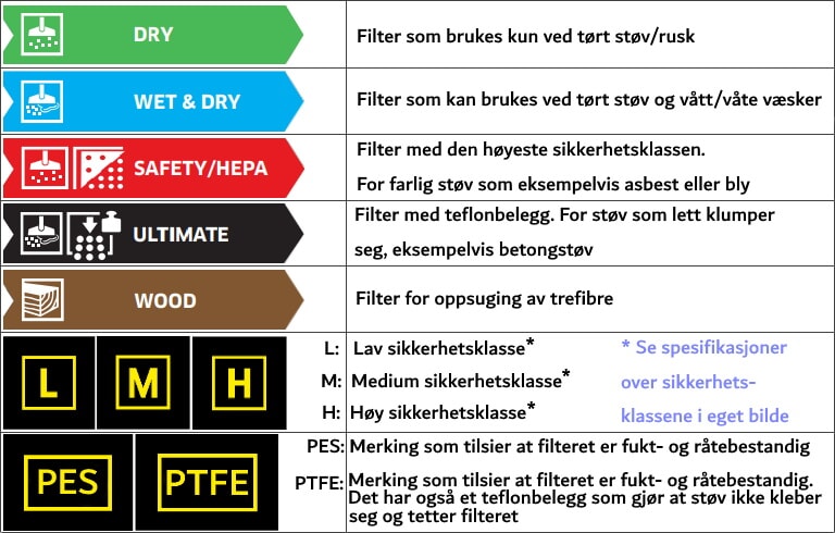 Flatt plissert filter Wet & Dry laget av PES-fibermateriale med blå etikett. Egnet for støvsuging av væsker, fint støv og grovt smuss i støvklasse M og L.