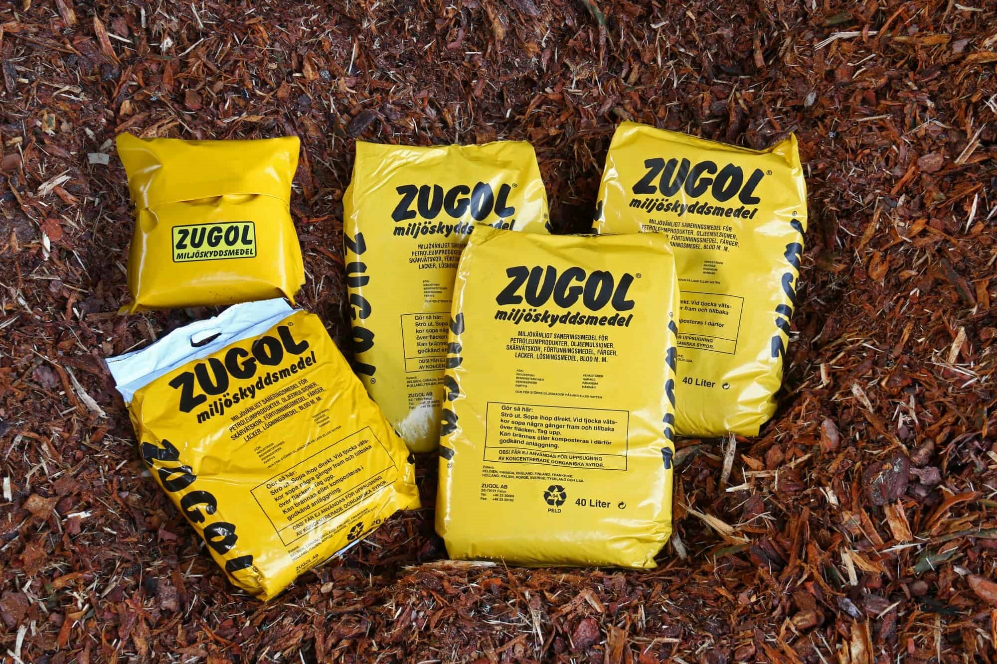 Et miljøvennlig og effektivt system for opprydding av søl av olje, bensin og andre kjemikalier. ZUGOL er laget av furubark, et rent og fornybart naturprodukt fra svenske skoger, helt uten tilsetninger av noen kjemiske stoffer. ZUGOL finnes i mange ulike versjoner, spesialtilpasset for å gi deg som bruker best mulig funksjon.