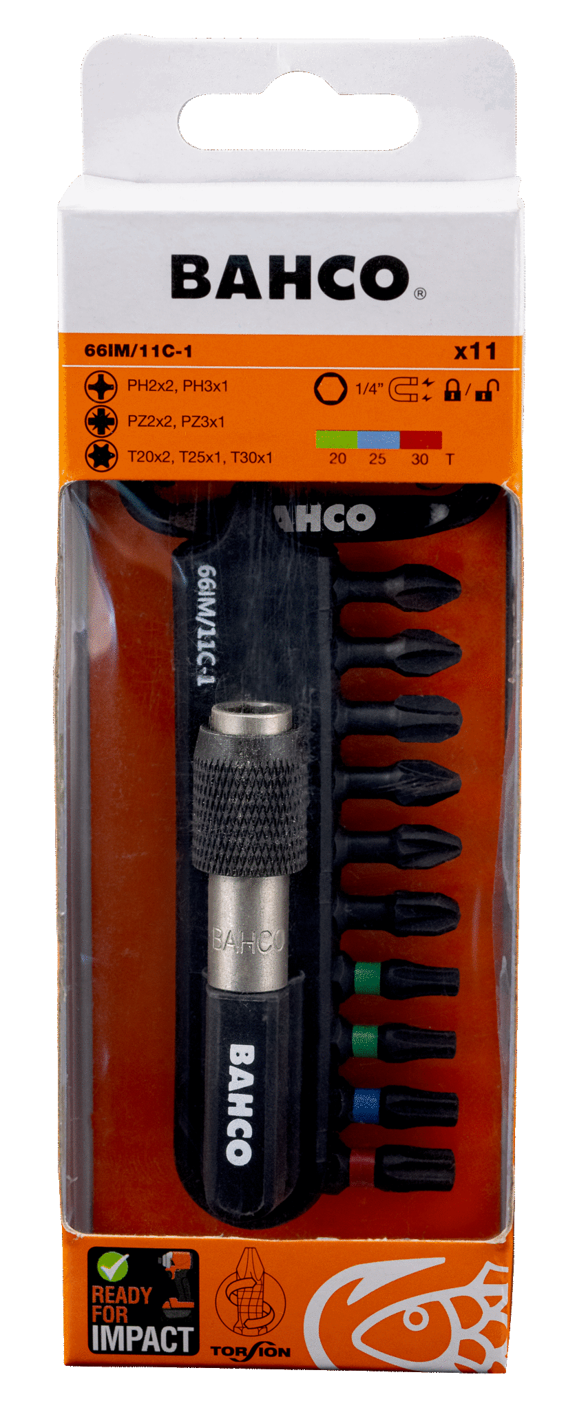 - Torx®-bits med fargekoding som gjør det enkelt å finne riktig størrelse