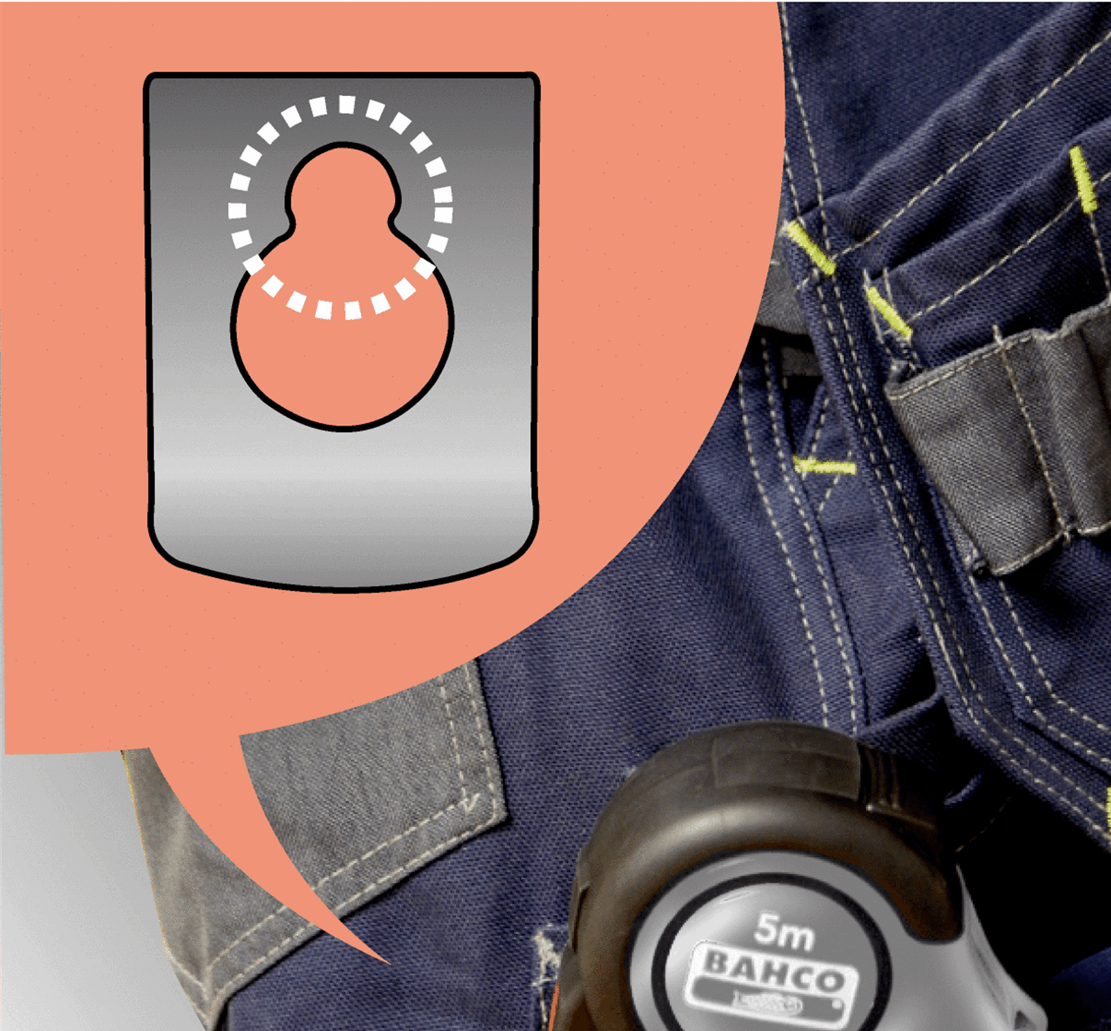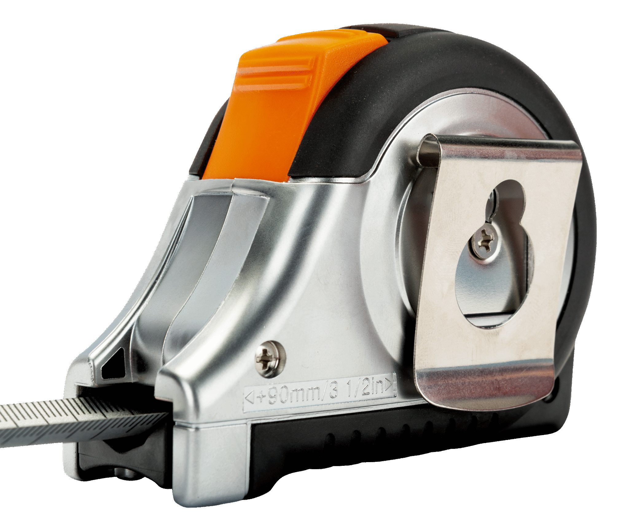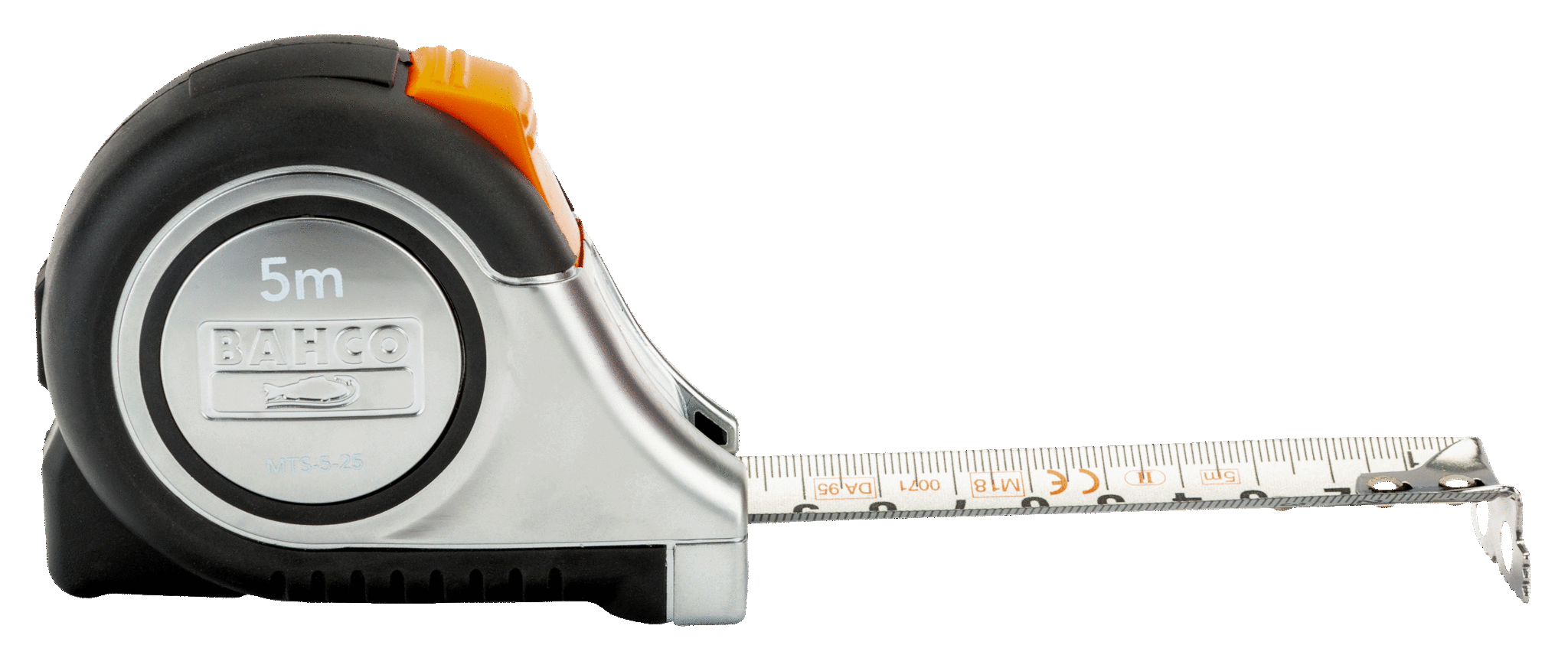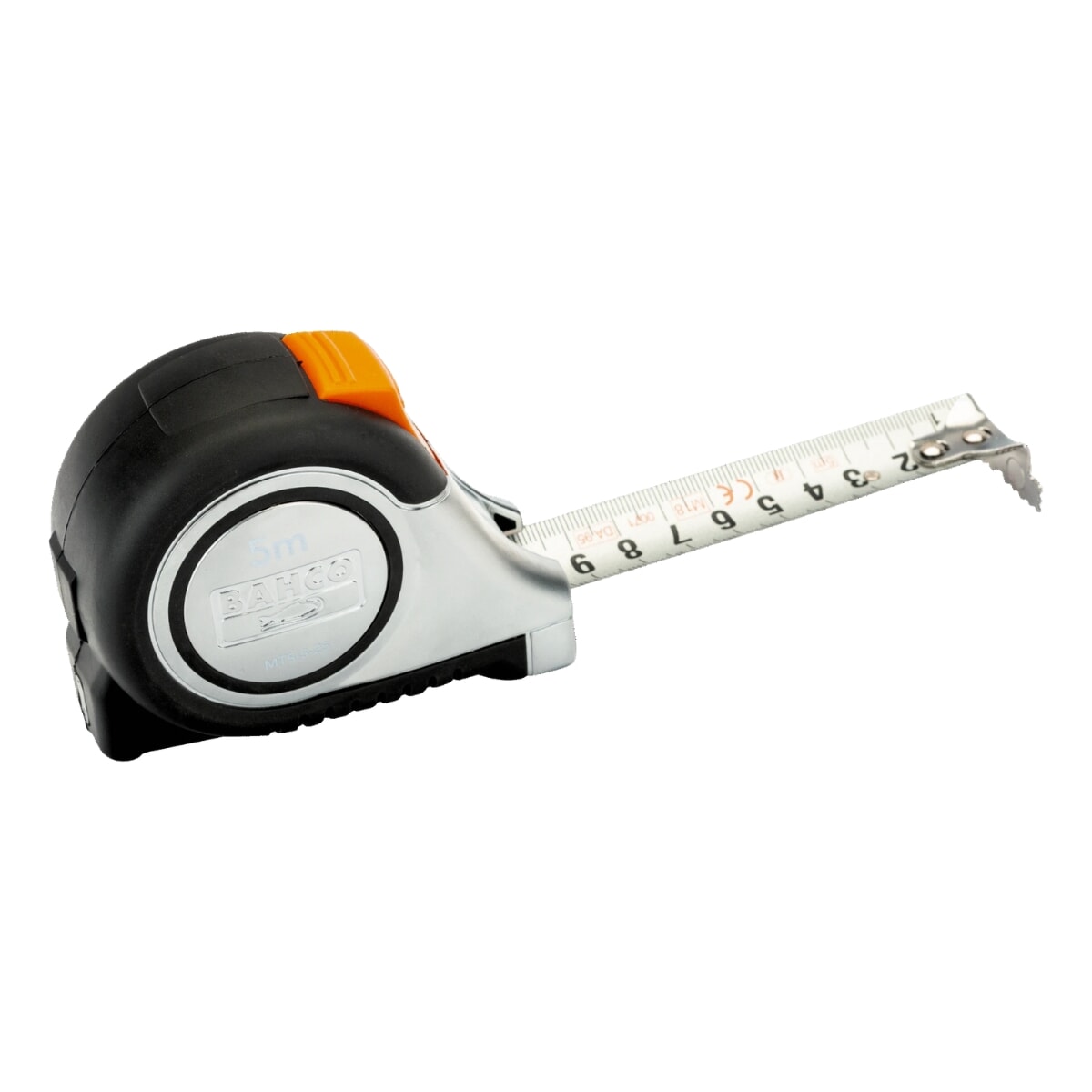 Målebånd med automatisk bladlås som gjør det enkelt å bruke, siden bladet forblir ute til inntrekkingsknappen aktiveres.