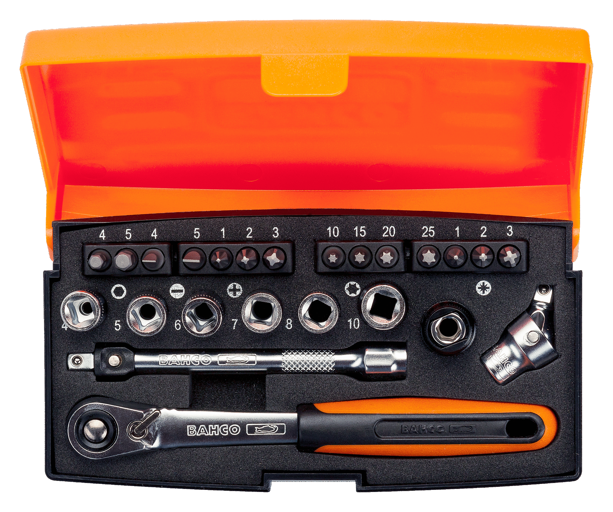 1/4" Pipesett med firkantinnfestning, metrisk sekskant og skrutrekkerbits/bitsholder