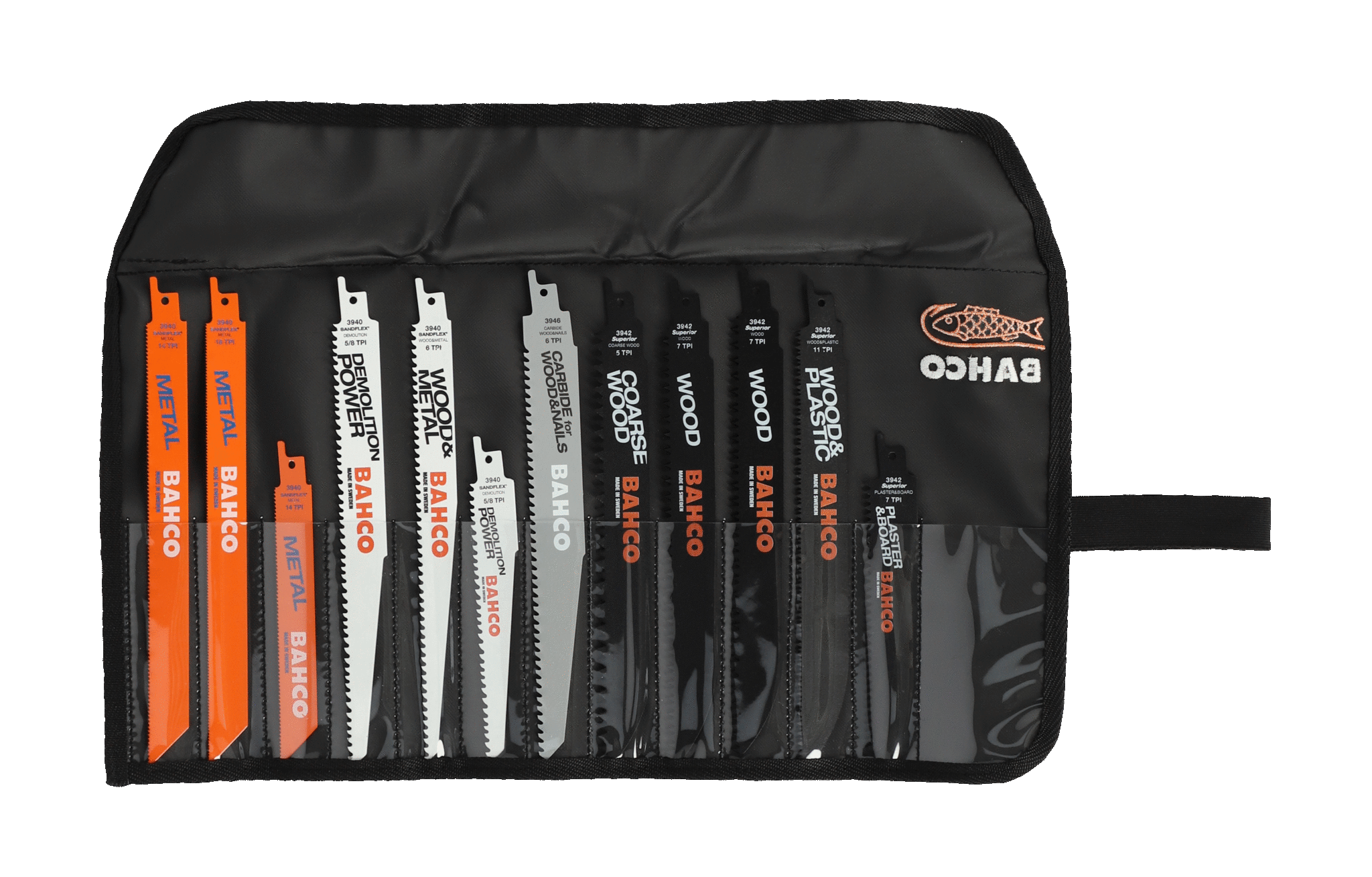 Bajonettsagbladsett med praktisk og fin oppbevaringsmappe. Gir deg full oversikt over de ulike bladene.