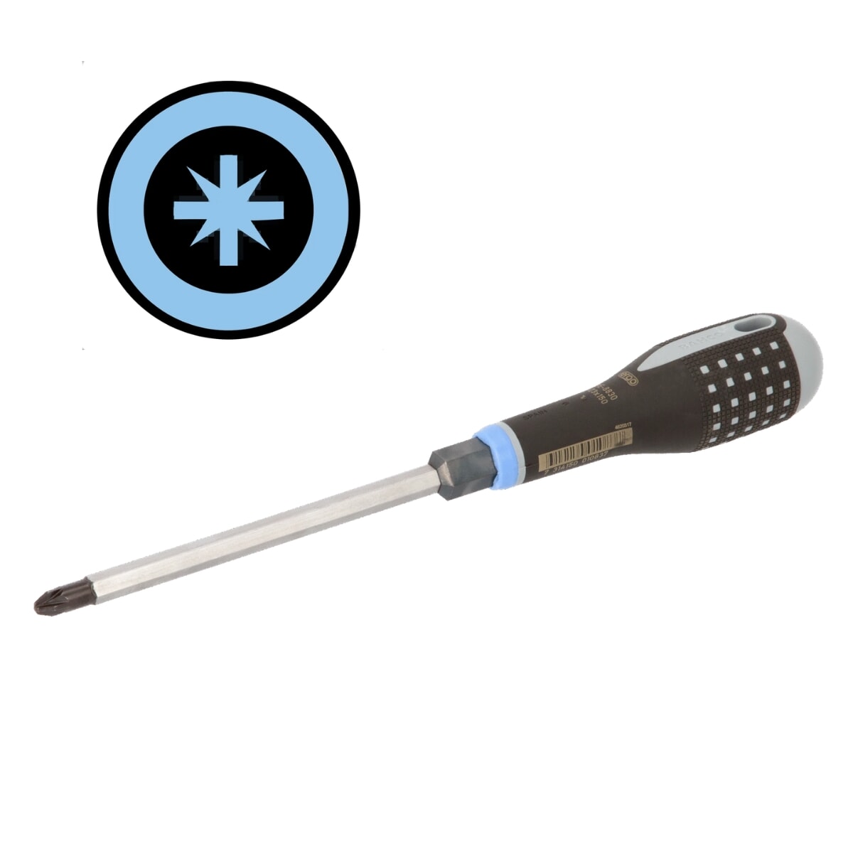 PZ1 og PZ2 Skrutrekker for pozidriv-skruer, utviklet i samsvar med den vitenskapelige ERGO™-prosessen. Dette gir maksimal komfort med minimal innsats takket være ergonomisk utførelse. Skrutrekkeren har også et sekskantet nøkkelgrep på klingen for fastnøkkel eller skiftenøkkel.