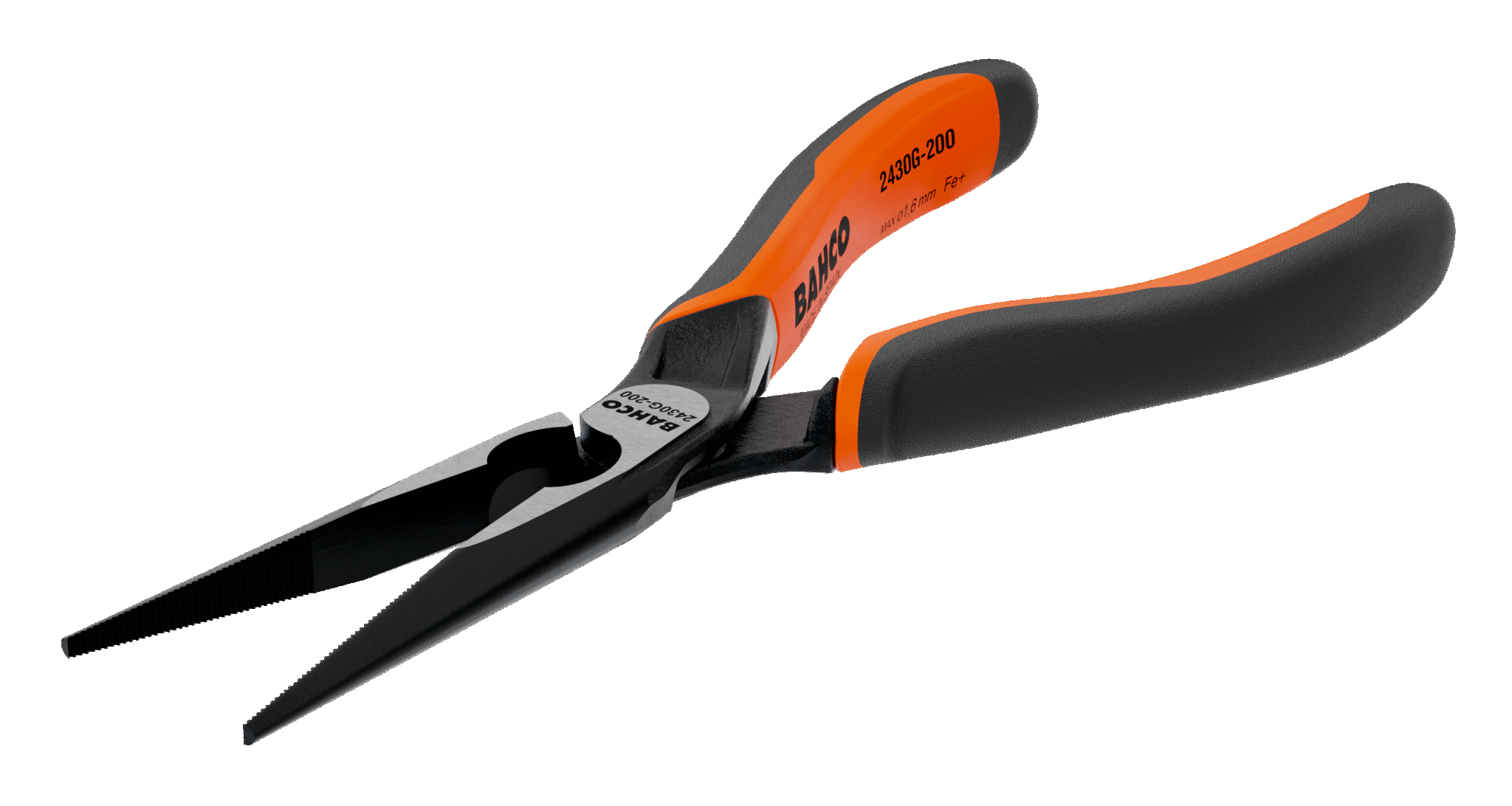 ERGO™ Lange spisstenger med selvåpnende kjefter og to-komponents håndtak. Fosfatert utførelse