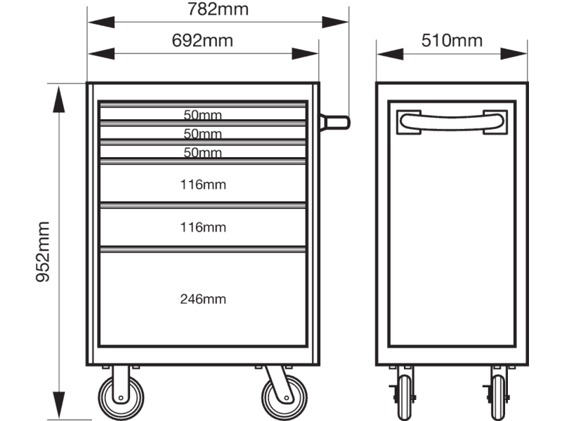 - Solid og sikkert, rundt låsesystem beskytter verktøyvognen mot tyveri